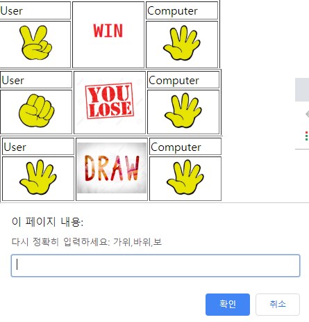 usertext = prompt ("다시 정확히 입력하세요: 가위,바위,보")