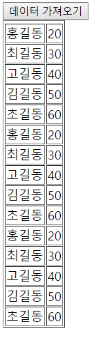 tr += "</tr>"; //<tr><td>홍길동</td><td>20</td></tr>