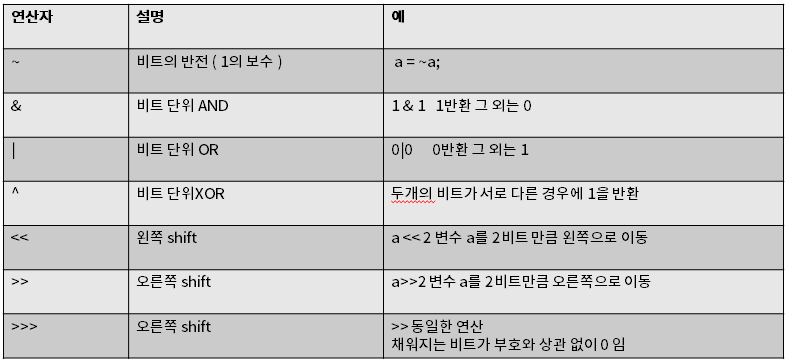 - >>> 는 지정한 수만큼 비트를 전부 오른쪽으로 이동시키며, 새로운 비트는 전부 0이 된다