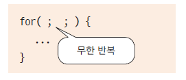 - 조건식 생략 : 반복 수행에 대한 조건이 수행문 내부에 있는 경우